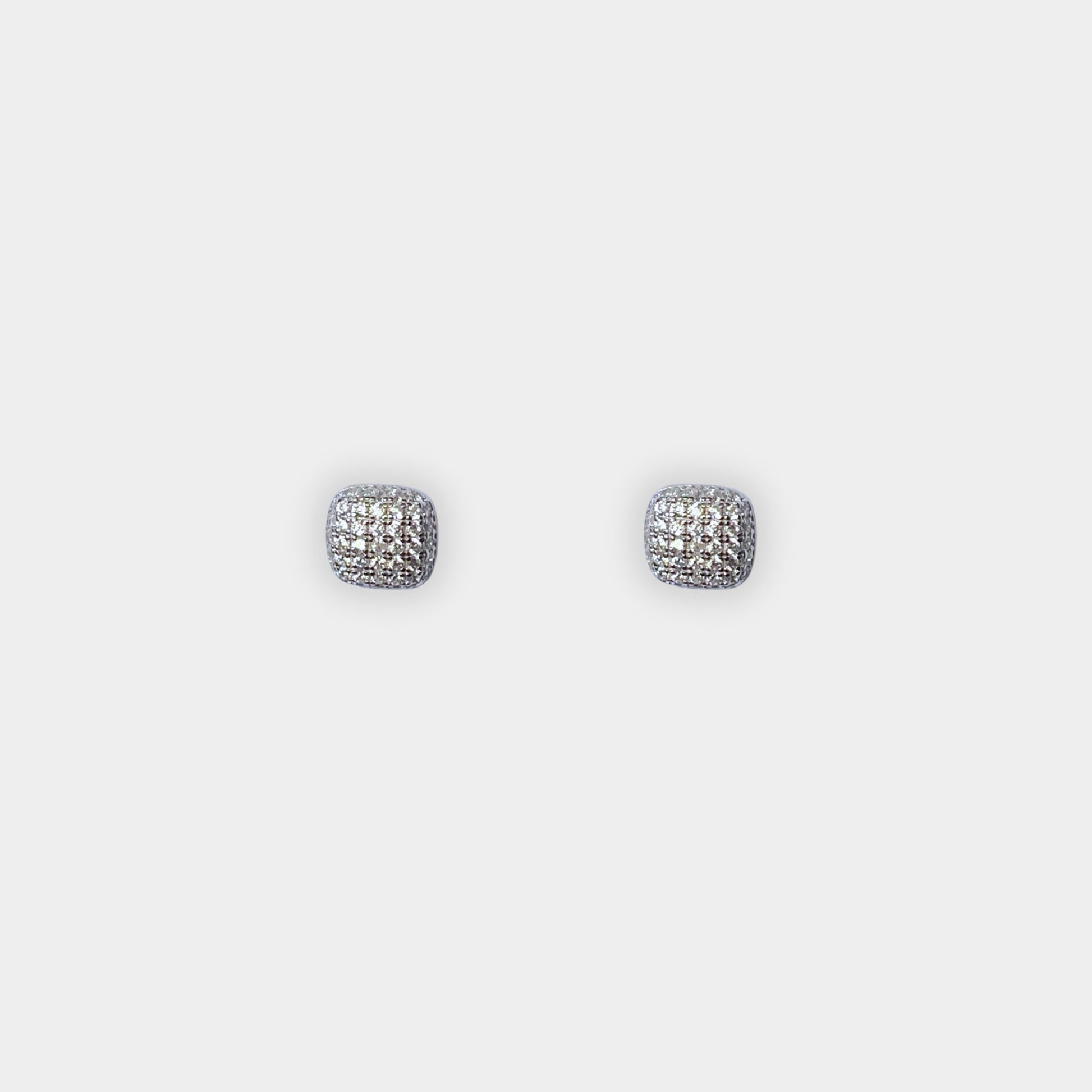 tributo al brillo sutil y la elegancia atemporal. Su forma cuadrada ligeramente redondeada y su superficie pavé de zirconias capturan la luz desde cualquier ángulo, aportando un toque refinado sin excesos.
