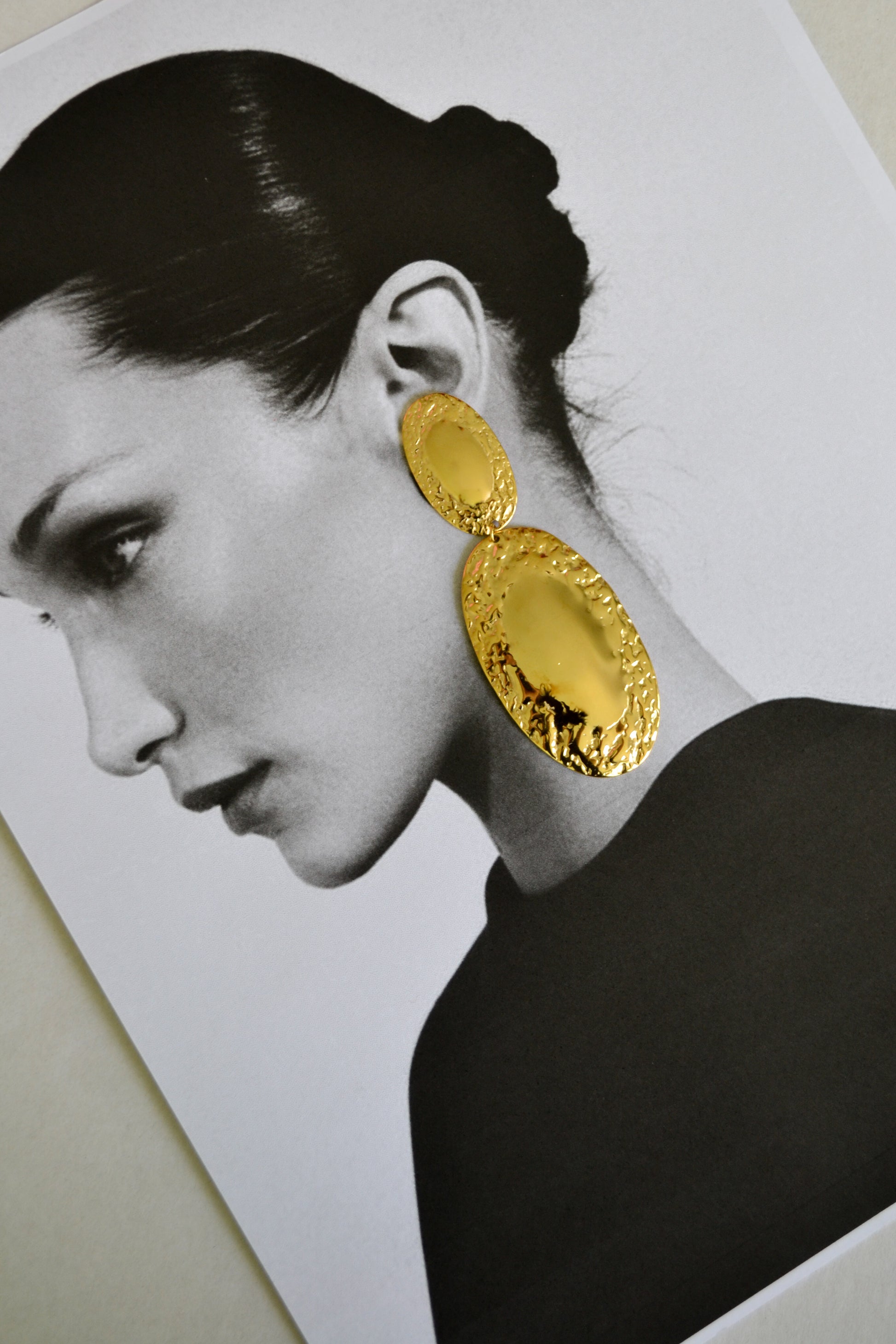 Los Aretes Valentina están diseñados para mujeres que saben brillar con naturalidad. Su acabado martillado y su silueta ovalada alargada los convierten en una declaración de estilo, perfectos para elevar cualquier atuendo, desde looks de noche hasta piezas minimalistas de día.