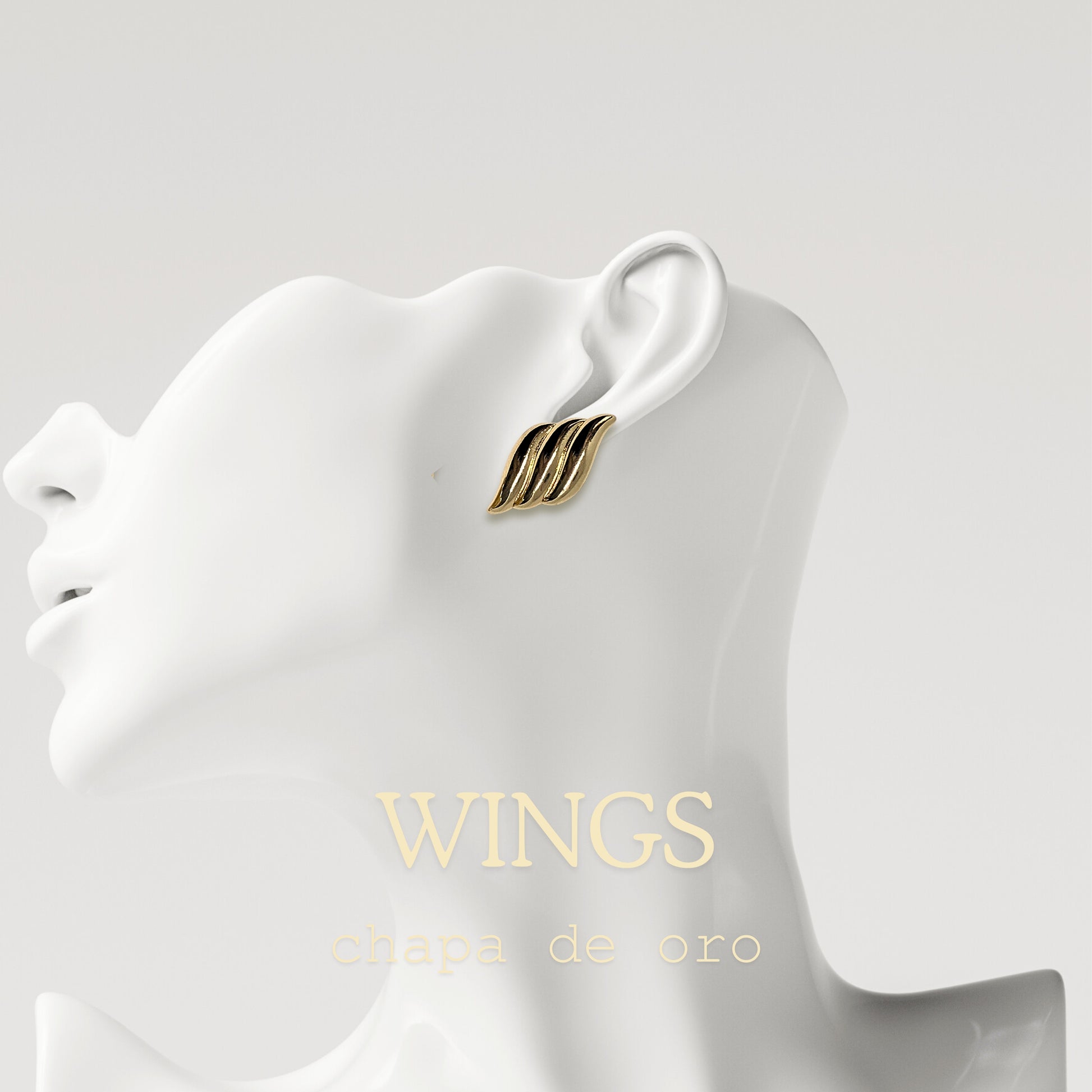 Dale un toque único a tu estilo con este arete en forma de ala, hecho en chapa de oro. Su diseño elegante es perfecto para resaltar cualquier look, ya sea casual o más formal.