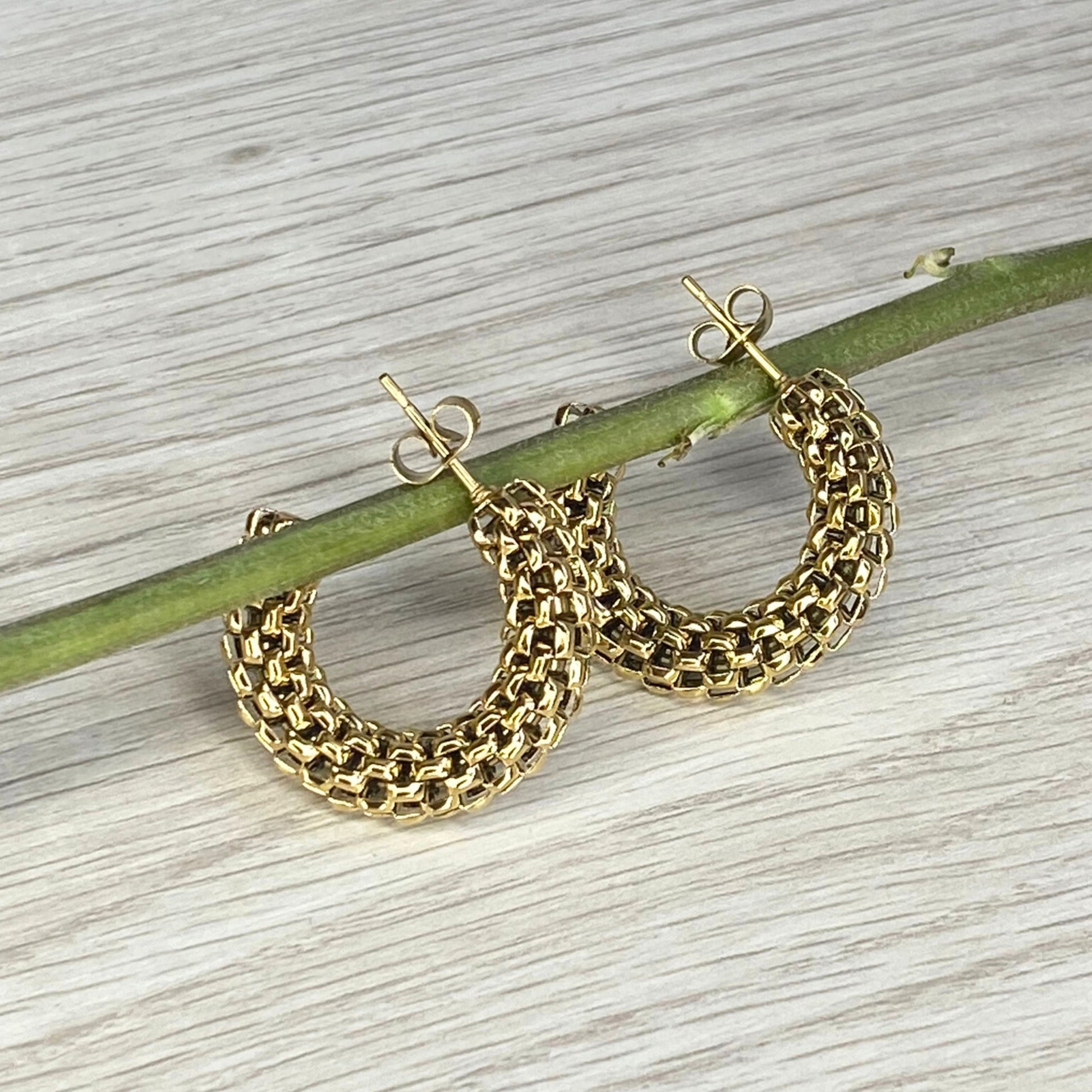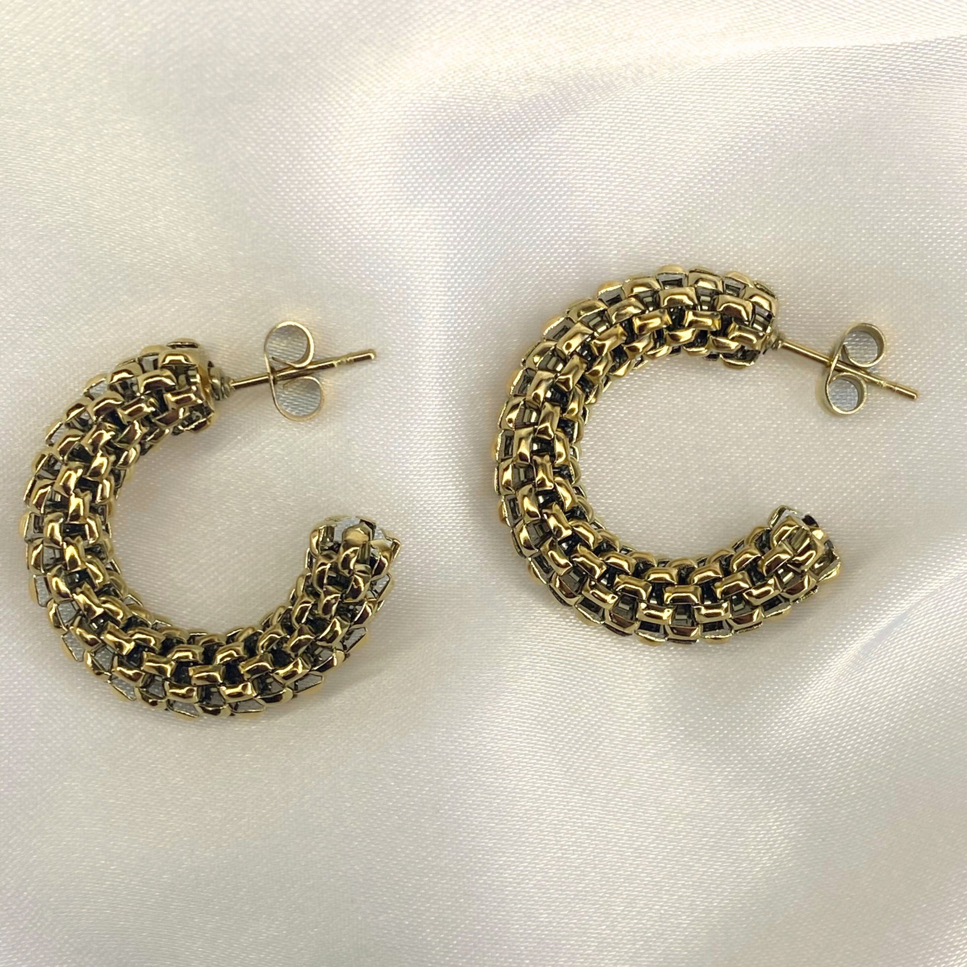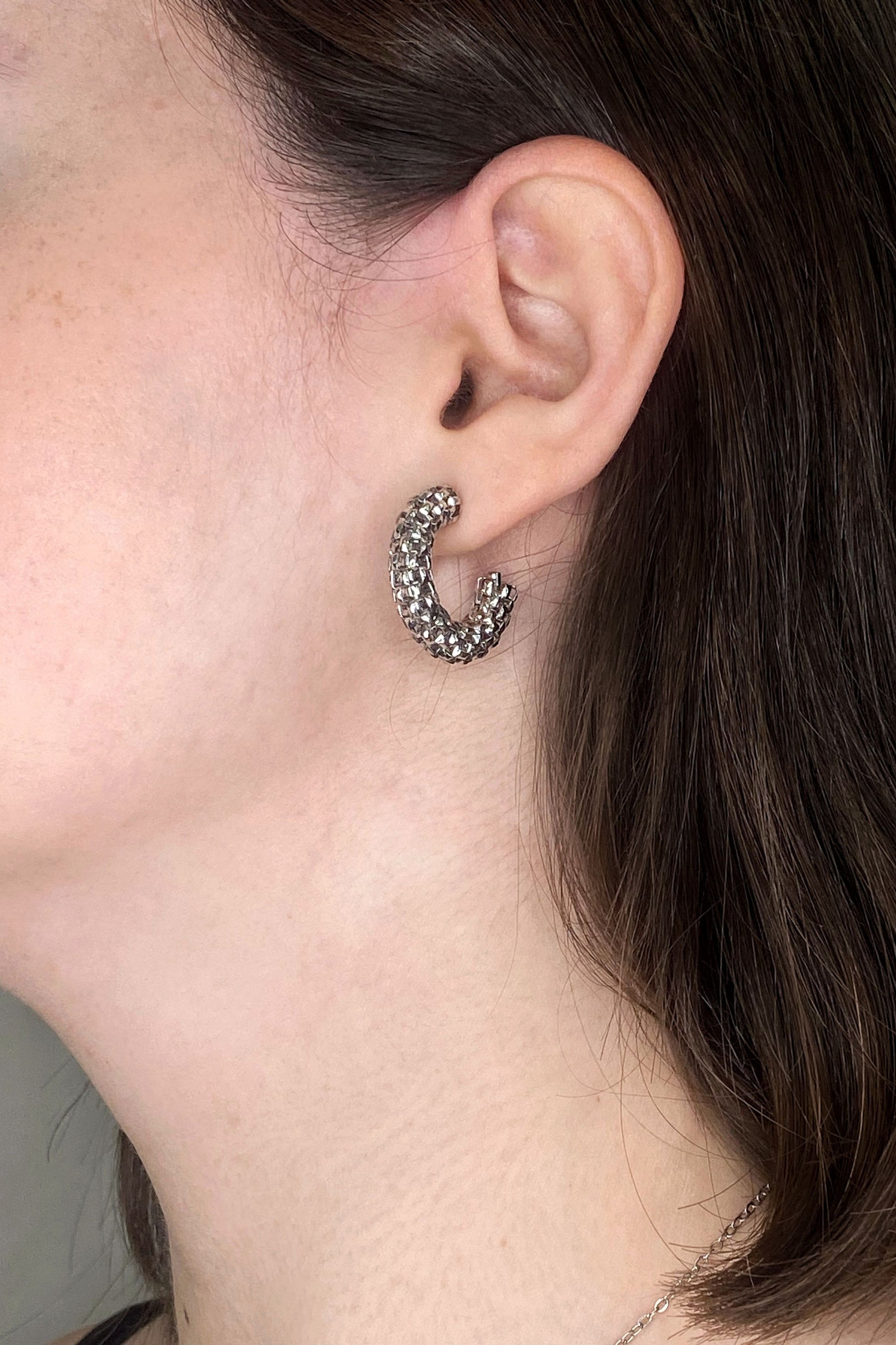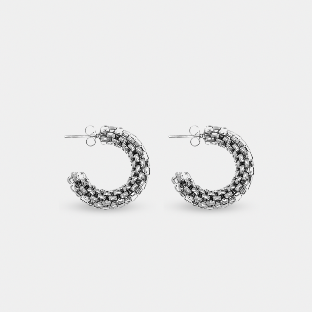 Grid captura la esencia de las formas entrelazadas con su textura tipo malla, aportando un juego de luces sutil y elegante. Su forma de media arracada las hace ligeras y cómodas, perfectas para llevar del día a la noche.