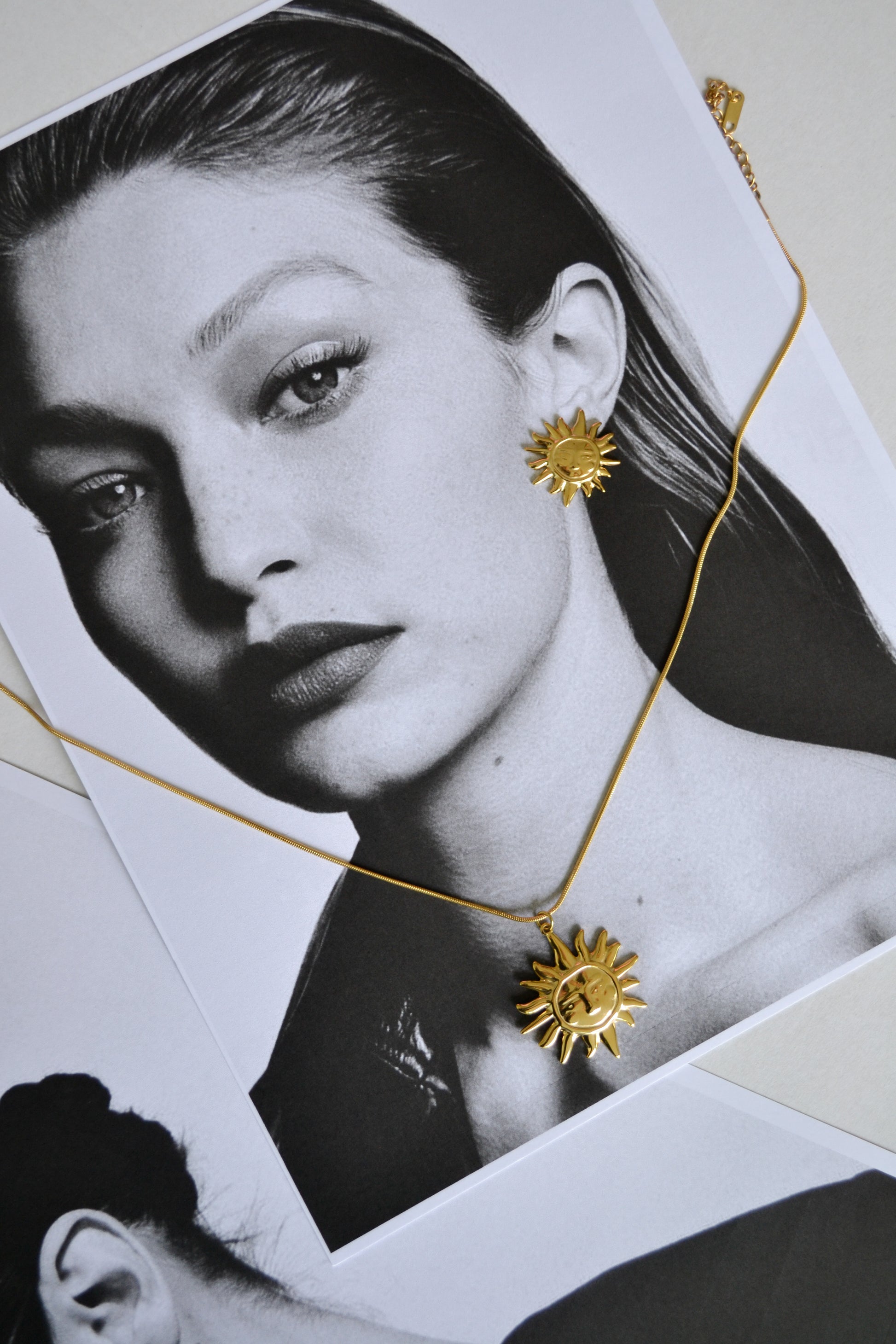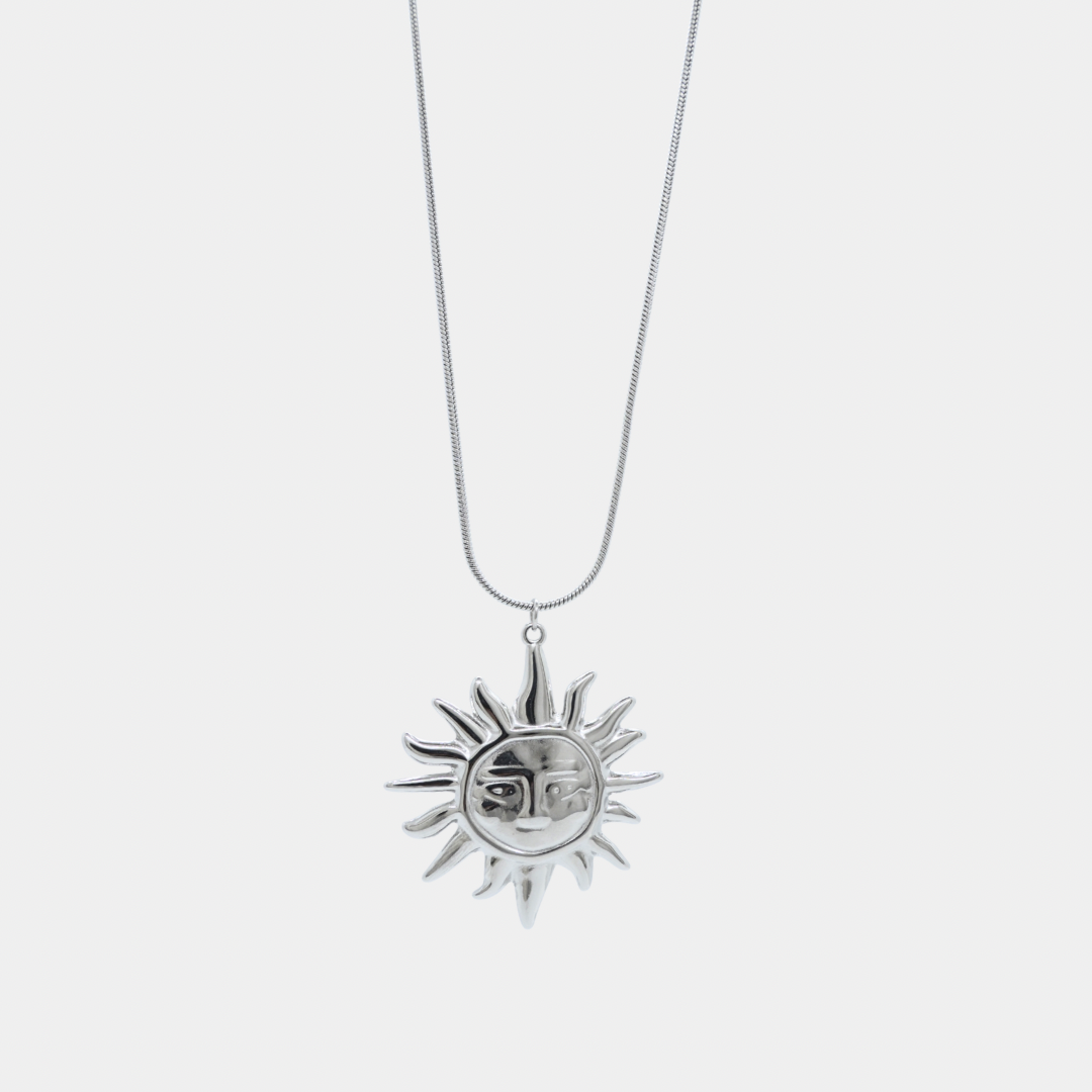 El complemento perfecto para los Aretes Solsticio. Su dije en forma de sol con rostro esculpido evoca equilibrio, energía y conexión con el universo. Ideal para quienes encuentran belleza en los símbolos y fuerza en lo espiritual.